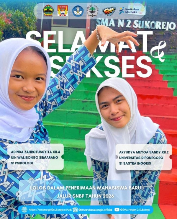Atas lolosnya siswa SMA Negeri 2 Sukorejo di Penerimaan Mahasiswa Baru Jalur SNBP .....